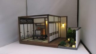 手作りドールハウス◆和1/12 「6畳京町屋 奥の間」「6畳用庭 白壁の庭園」