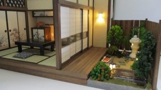 手作りドールハウス◆和1/12 「昭和レトロ6畳 奥の間」「 板塀の裏庭」