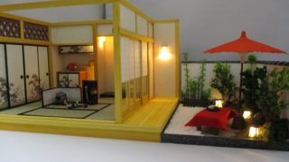 手作りドールハウス◆和1/12「6畳 春の茶会」「6畳用庭 麗らか」