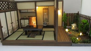 手作りドールハウス◆和1/12 6畳 「古民家」「板塀の庭」