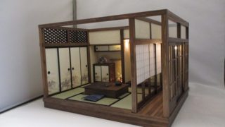 手作りドールハウス◆和1/12 昭和レトロ6畳廊下ガラス戸 置き囲炉裏