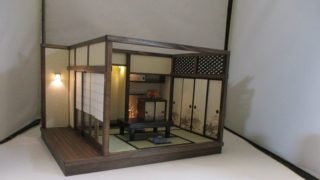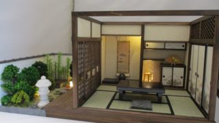 手作りドールハウス◆和1/12 「京町屋 6畳奥の間」「6畳用庭 白壁の庭」
