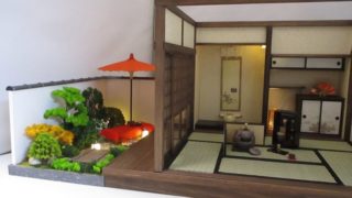 手作りドールハウス◆和1/12 6畳古民家 「茶室」「庭園野立て」