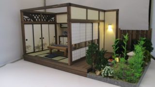 手作りドールハウス◆和1/12 6畳古民家 板塀の中庭