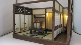 手作りドールハウス◆和1/12 昭和レトロ6畳 座敷 廊下ガラス戸
