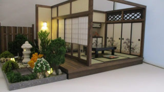 手作りドールハウス◆和1/12 「6畳 古民家離れ、板塀の中庭」