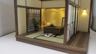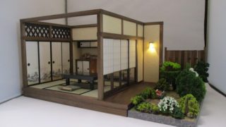 手作りドールハウス◆和1/12「京町屋 6畳奥の間」「6畳用庭 板塀の中庭 」