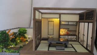 手作りドールハウス◆和1/12 6畳古民家陽だまり 紅葉の庭園